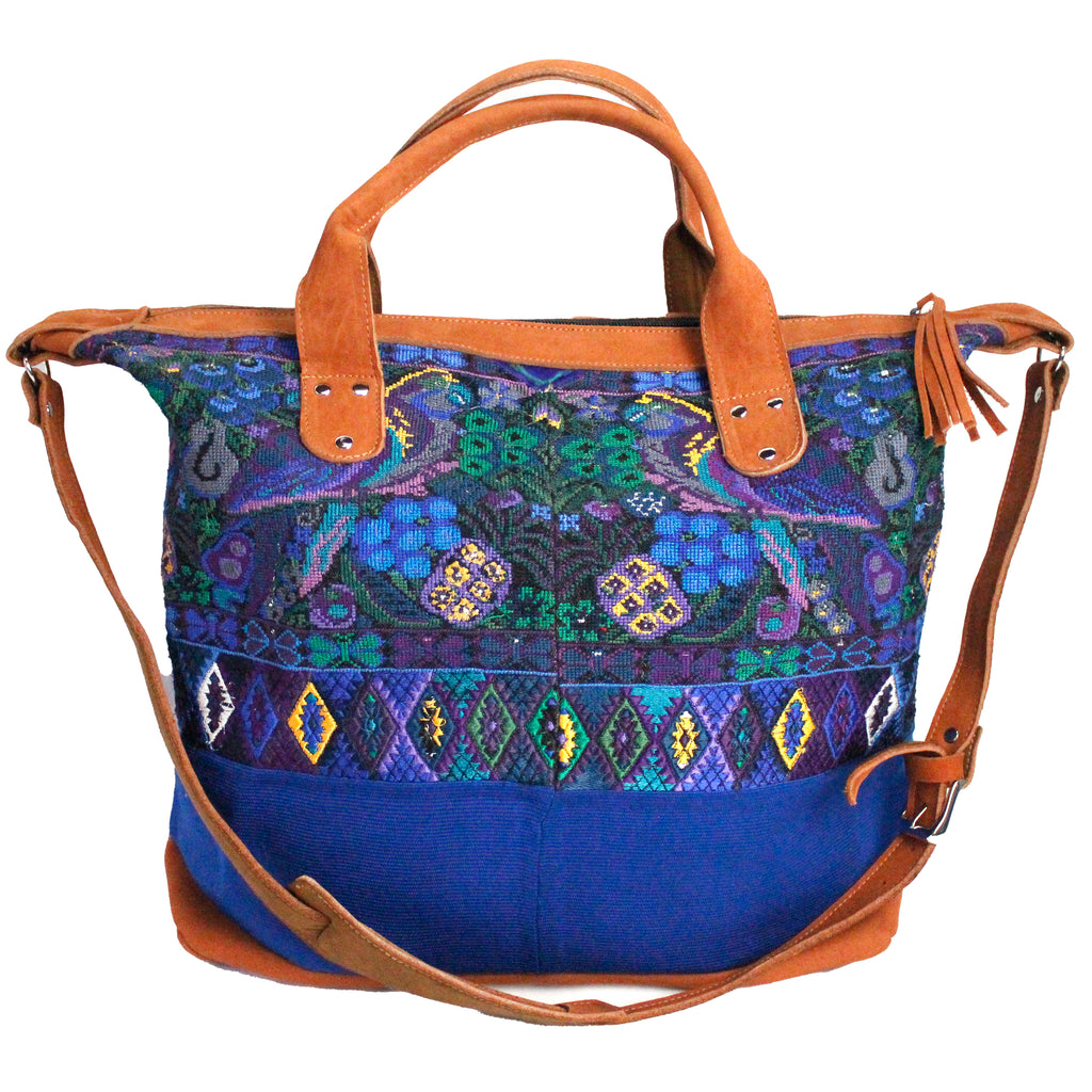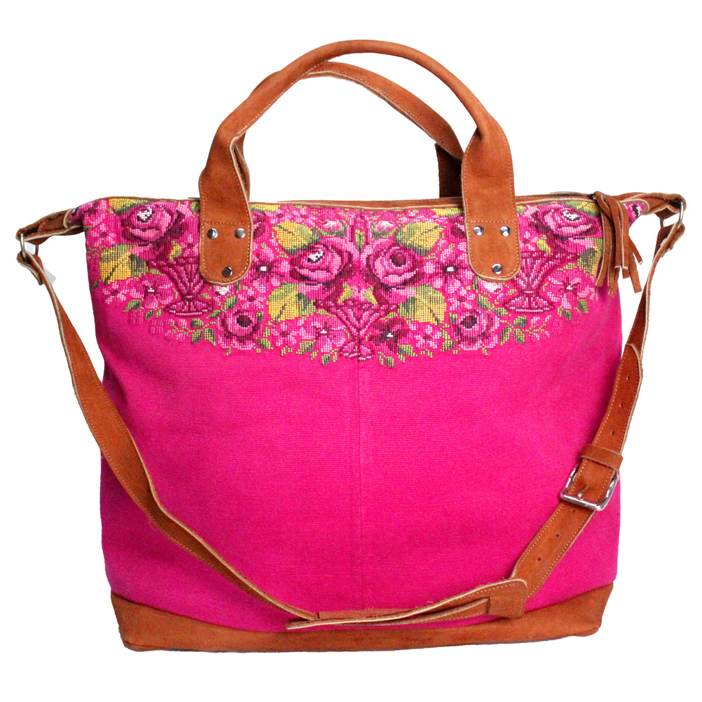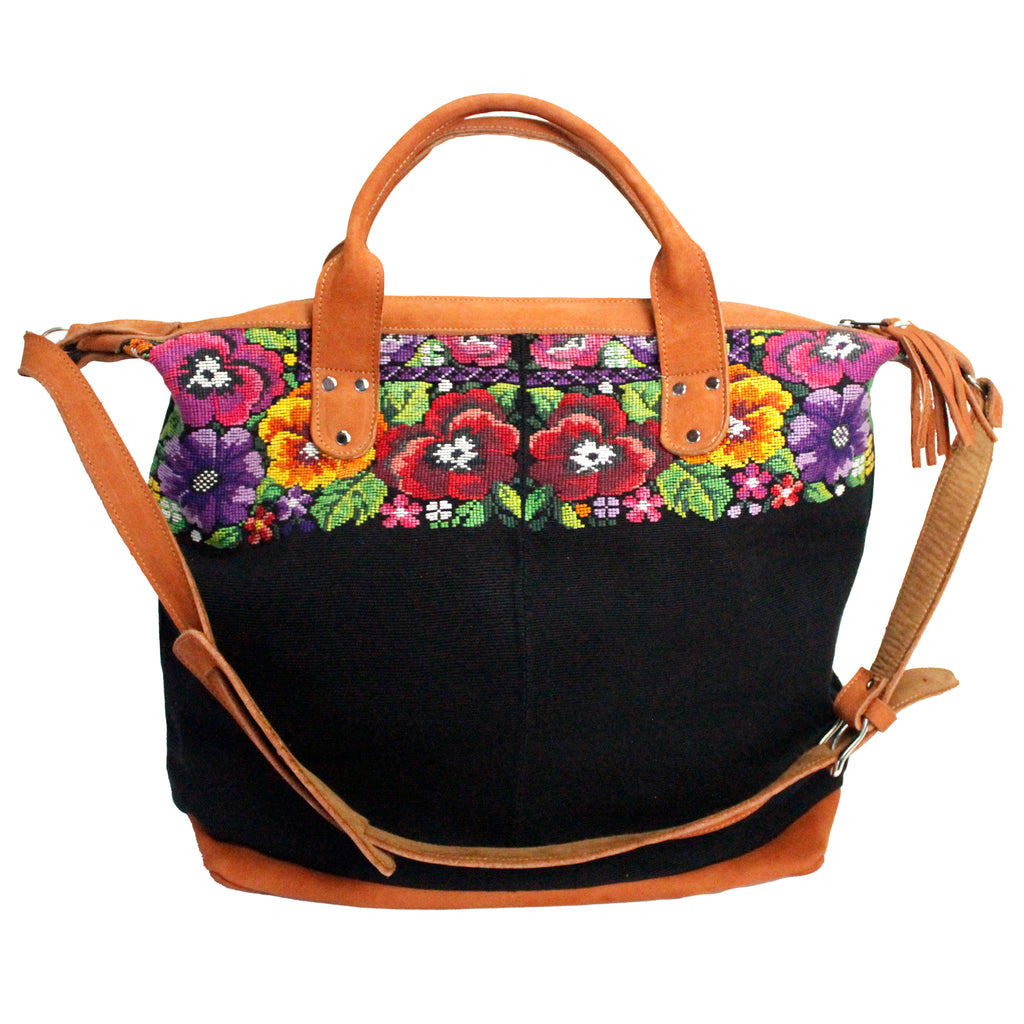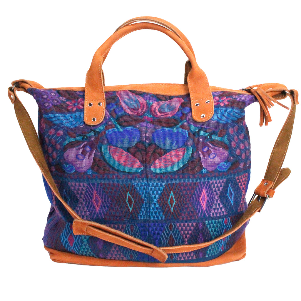 This elegant huipil travel bag is perfect for a weekend trip! Available in a variety of vibrant color combinations.