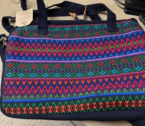 Jacinta, with her keen eye for design, has fabricated the perfect cover to keep your laptop safe and stylish! Features huipils on both sides; textiles may vary.