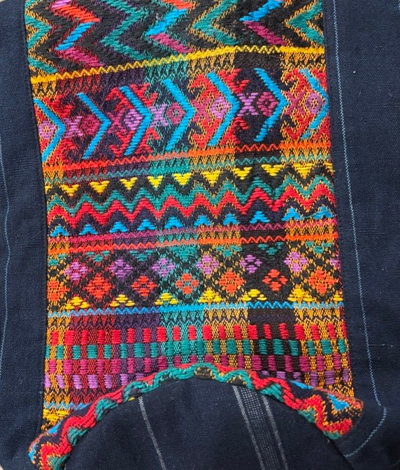 Materials: dark blue corte and multicolored upcycled huipil