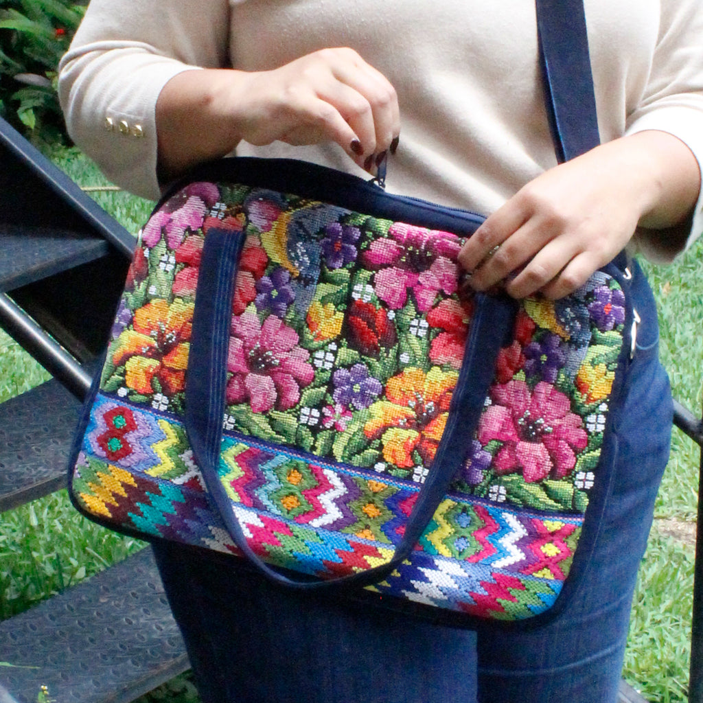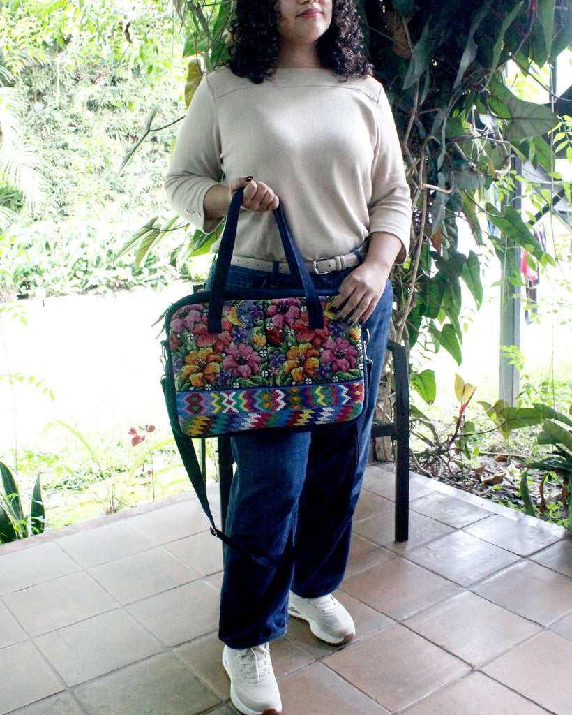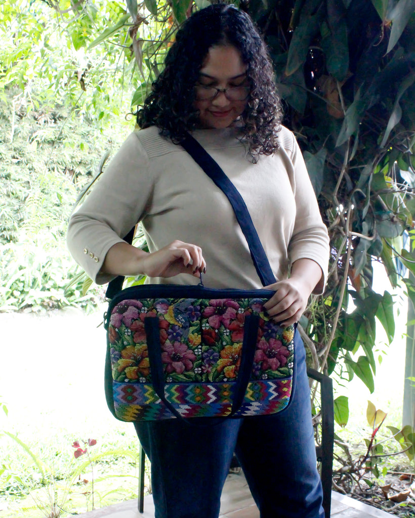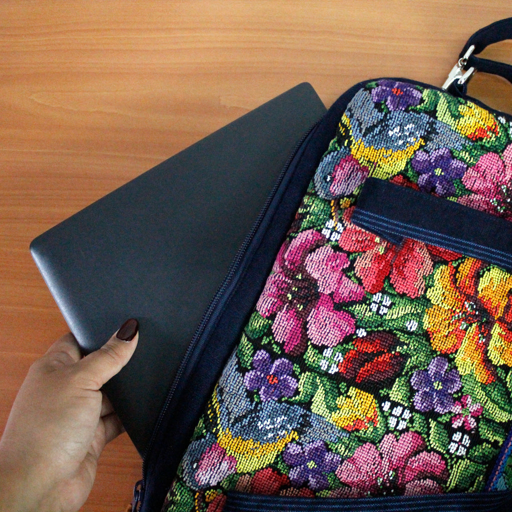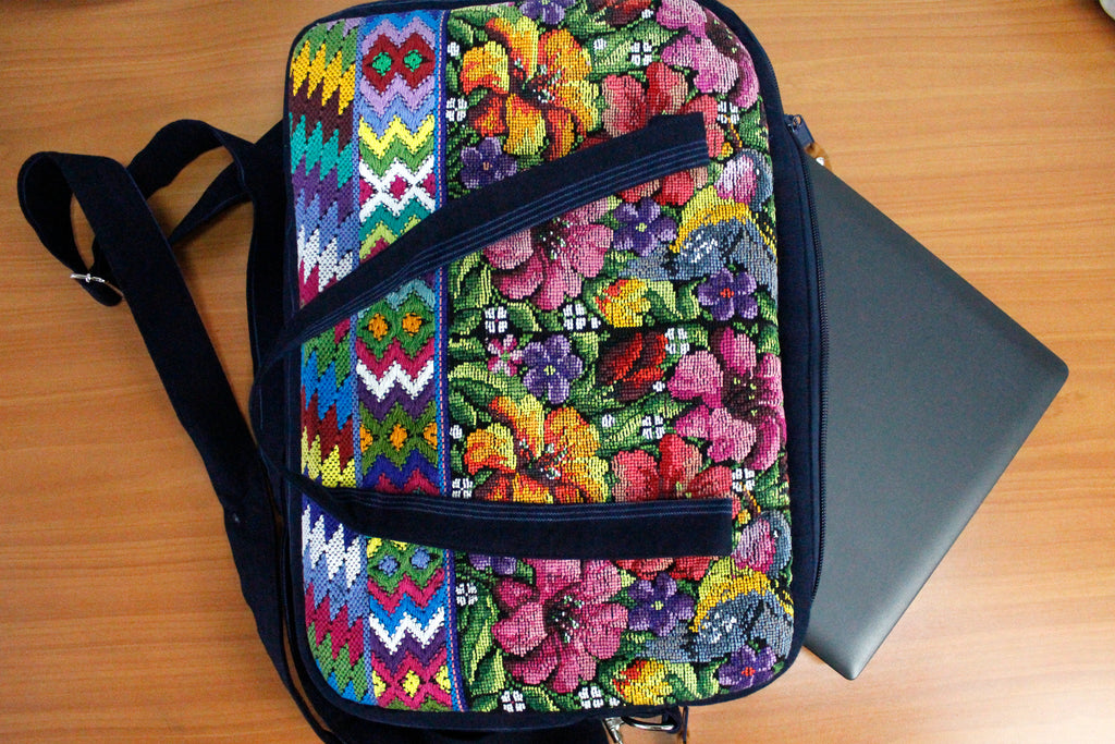Jacinta, with her keen eye for design, has fabricated the perfect cover to keep your laptop safe and stylish! Features huipils on both sides; textiles may vary.