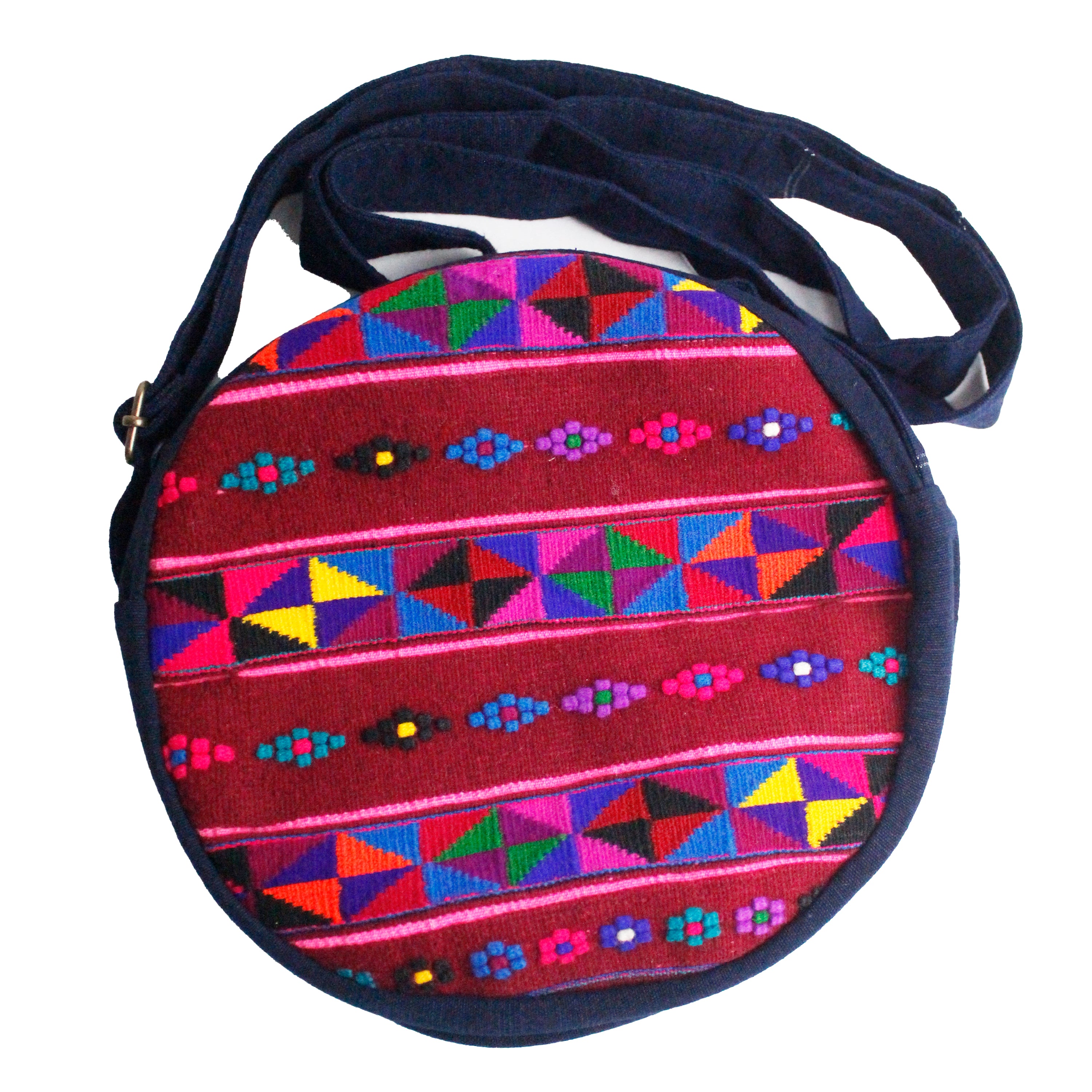 A sweet and simple round purse with just enough huipil to make it stand out from the crowd! It's unisex and versatile.